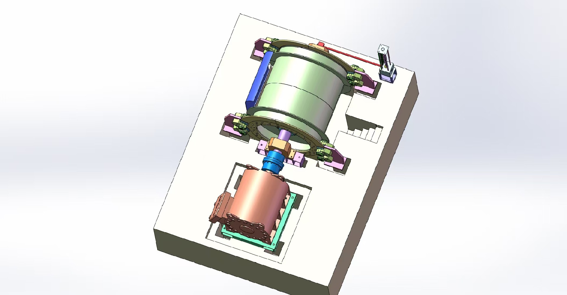 永磁電機(jī)簡述,電機(jī)定子由外殼、鐵芯和繞組組成。帶有繞組的定子鐵芯直接熱套在定子殼體內(nèi)。定子鐵芯由高質(zhì)低耗的電氣硅鋼片沖疊而成,每片硅鋼片的兩面通過耐熱無機(jī)涂層進(jìn)行絕緣。整個定子鐵芯在鐵芯兩端用鋼環(huán)壓緊。線圈和外沿形成了堅固且耐用的結(jié)構(gòu),能承受住因突然短路和突發(fā)負(fù)荷變化而產(chǎn)生的沖擊。絕緣等級設(shè)計成F級,即很大熱點溫度限制在155℃。轉(zhuǎn)子由轉(zhuǎn)子支架、熱套于轉(zhuǎn)子上的鐵芯、和安裝于鐵芯內(nèi)的永磁體組成。轉(zhuǎn)子軸由鍛造鋼支撐,并精加工到精確的規(guī)格。轉(zhuǎn)子鐵芯由硅鋼片沖疊而成,沖疊在兩片厚鋼片之間。幾個鋼棒軸向穿過硅鋼片,固定于端鋼片上,以便使沖疊結(jié)構(gòu)更加緊密、鐵芯更加堅固。勵磁能量由安裝在轉(zhuǎn)子鐵芯內(nèi)的永磁體提供。無需任何的外部連接。永磁材料是基于機(jī)械、發(fā)熱和磁能退磁要求來選擇的,并能夠保證持續(xù)提供提升機(jī)工作需要的扭矩大小。